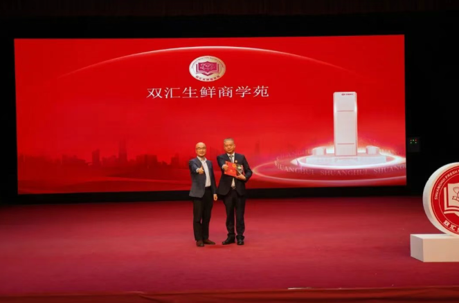 在全場(chǎng)倒計(jì)時(shí)聲中,與會(huì)代表共同推動(dòng)啟動(dòng)推桿,“雙匯生鮮商學(xué)苑”七個(gè)金色大字在流沙臺(tái)中徐徐呈現(xiàn),標(biāo)志著學(xué)苑正式揚(yáng)帆起航。