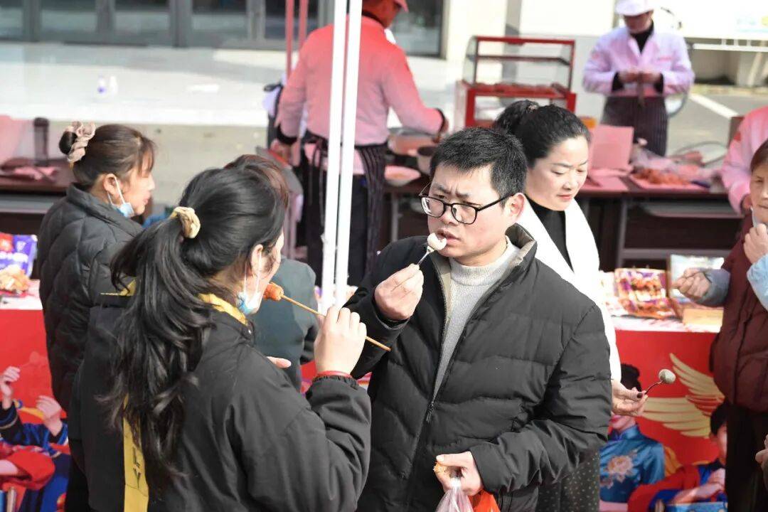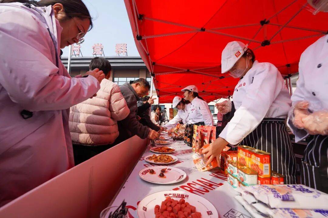 “這肉腸真香,咬一口還爆汁!”“這個(gè)啥時(shí)候上市?我得記著買!”試吃臺(tái)前,大家你一言我一語(yǔ),邊嘗邊問(wèn),熱鬧勁兒一點(diǎn)兒不輸戲臺(tái)。