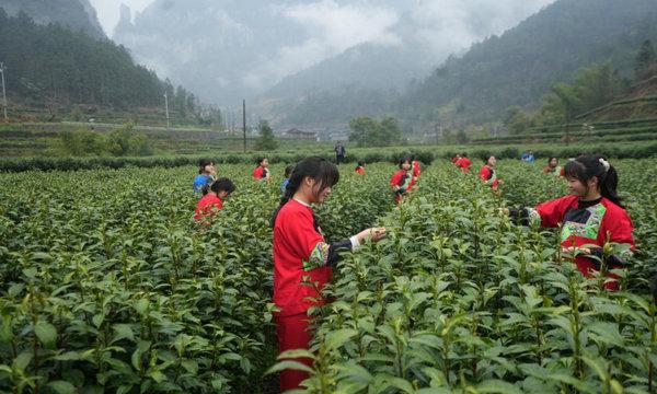 隨著石遠定主席的宣布,茶農(nóng)們和茶仙子學生們迅速投入到緊張的采摘工作中。他們的手指在嫩綠的茶葉間輕快地跳躍,忙碌的身影構(gòu)成了一幅美麗的春日畫卷。