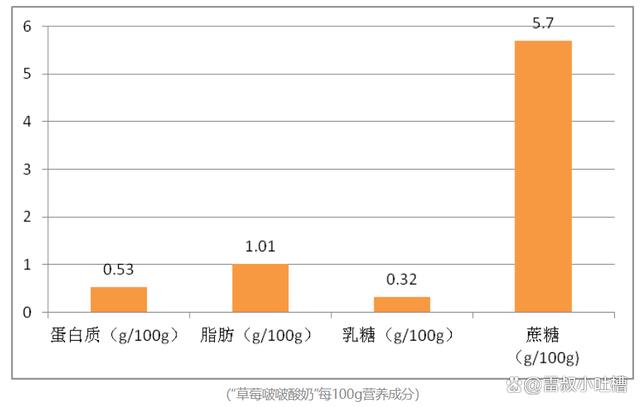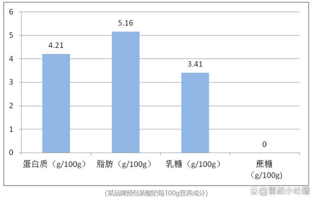 而預包裝酸奶樣品蛋白質含量4.21g/100g,脂肪含量5.16g/100g,乳糖含量3.41g/100g,蔗糖含量為0。