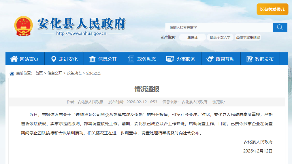 湖南安化縣人民政府2月12日通報(bào):