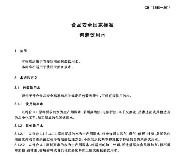 目前,有食品安全國家標準的只有“包裝飲用水”和“飲用天然礦泉水”,在國標下,對這兩種水有明確的定義和生產(chǎn)標準。