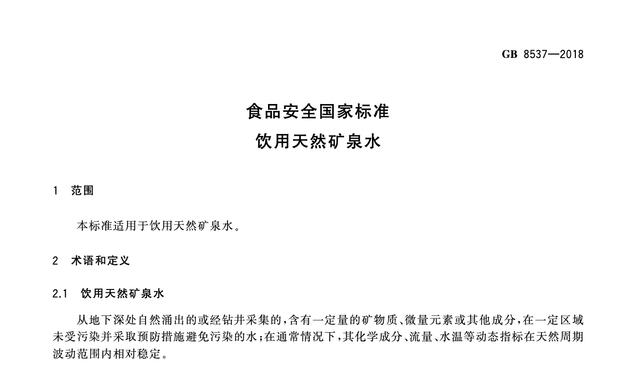至于飲用天然礦泉水,根據(jù)《食品安全國家標準 飲用天然礦泉水》(GB 8537-2018),其定義是從地下深處自然涌出的或經(jīng)鉆井采集的,含有一定量的礦物質(zhì)、微量元素或其他成分,在一定區(qū)域未受污染并采取預(yù)防措施避免污染的水。對能自稱“天然礦泉水”的廠商,國家不僅有嚴格的技術(shù)要求,其批準、生產(chǎn)和檢驗、標志、包裝、運輸、貯存等環(huán)節(jié)均有具體規(guī)范。