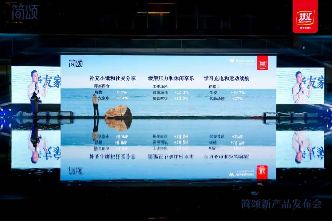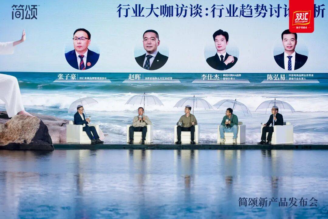 雙匯發(fā)展董事長萬宏偉,雙匯發(fā)展副總裁、肉制品事業(yè)部總經理趙國寶,雙匯發(fā)展研發(fā)副總裁孟少華與嘉賓代表一起上臺,共同宣告簡頌新產品正式發(fā)布。