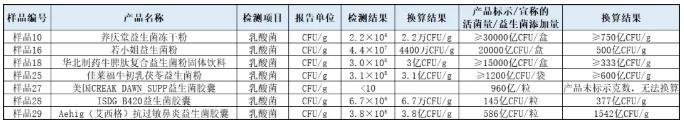 斯維詩、合生元、信誼、媽咪愛、舒伯特、月神、菌小寶、貝萊健、康恩貝、仁和、紐立安、湘雅康爾福、益聯(lián)清盈、黃金搭檔、浙華藥業(yè)共15款益生菌的活菌量檢測值雖少于標(biāo)示值,但差距較小。