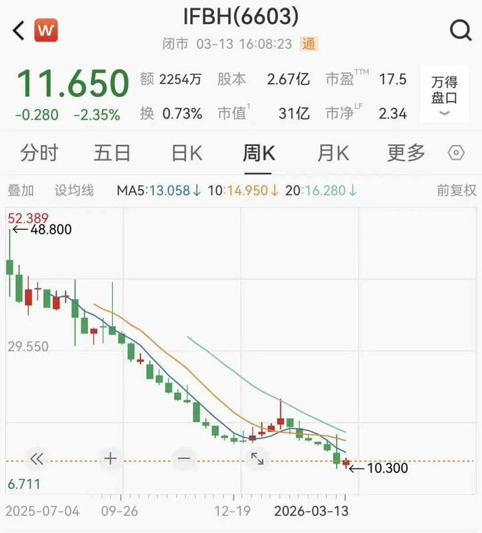 反映在資本市場(chǎng)上,截至2026年3月13日港股休市,IFBH Limited(港股代碼:06603.HK)最新總市值為31.07億港元。對(duì)比上市初期,IFBH 2025年6月30日上市首日市值達(dá)117.07億港元,盤中最高市值更是突破 126.8億港元。