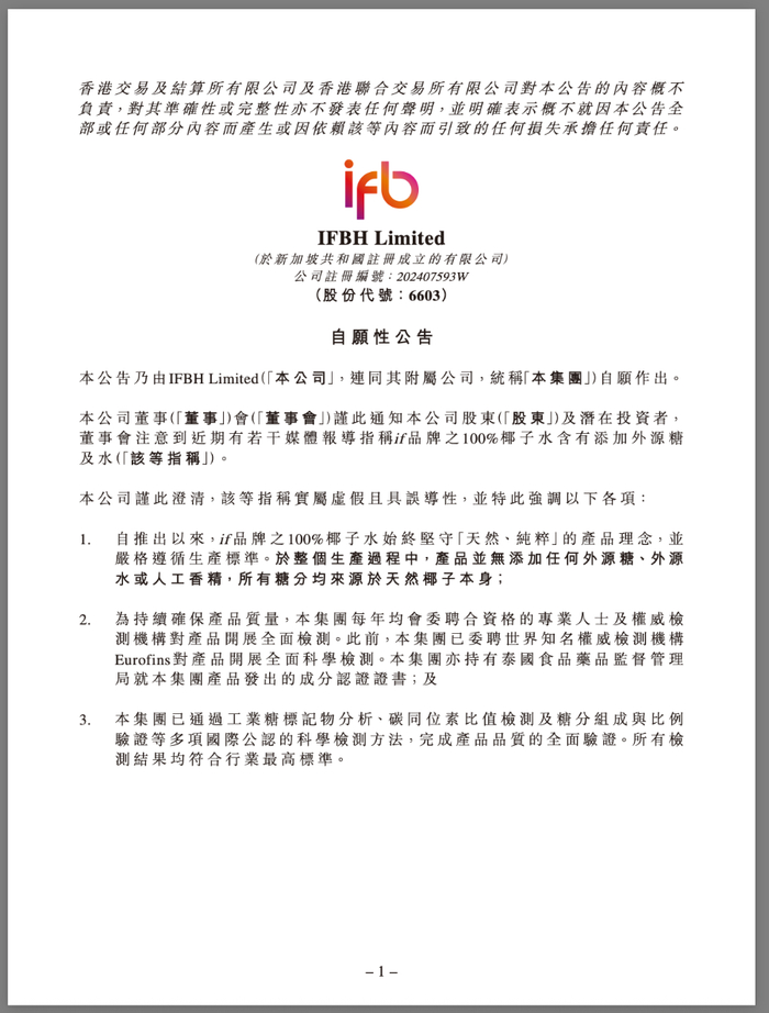 因其母公司IFBH Limited(06603.HK)在港股上市,公司同步在港交所發(fā)布發(fā)布正式澄清公告,直指媒體相關(guān)指稱實(shí)屬虛假且具有誤導(dǎo)性。
